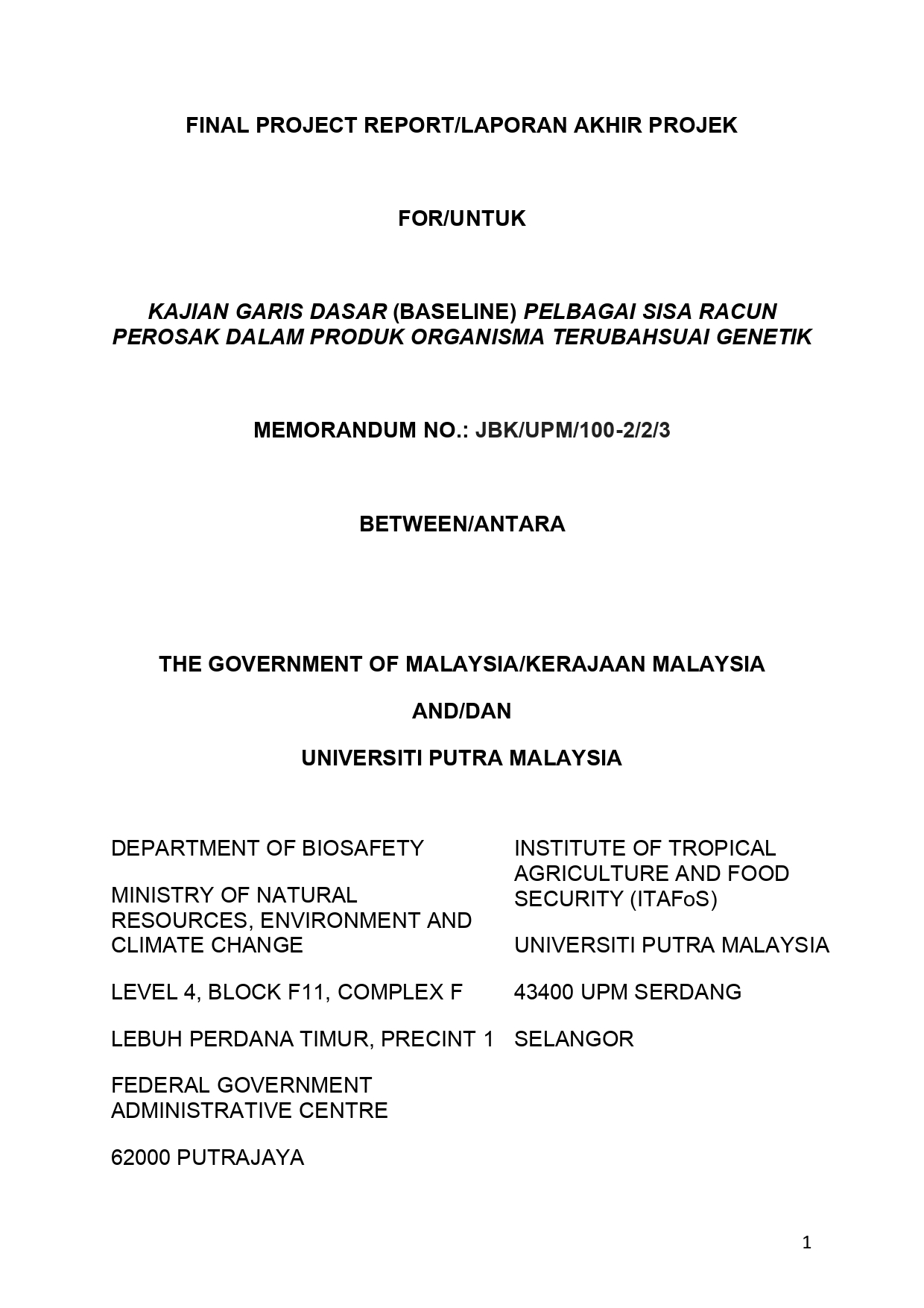 Profil Jabatan Biokeselamatan